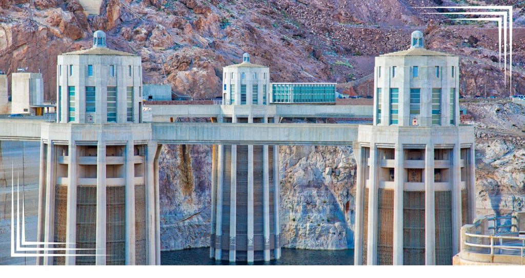 At its core, the Hoover Dam power plant works by converting the natural force of flowing water into electricity. Water from Lake Mead flows through large intake towers, channeling it into pipes called penstocks that direct the water to the base of the dam, where the power plant is located.